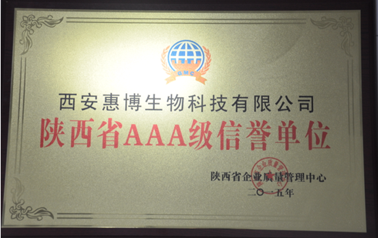 西安惠博生物科技有限公司榮獲陜西省AAA級信…